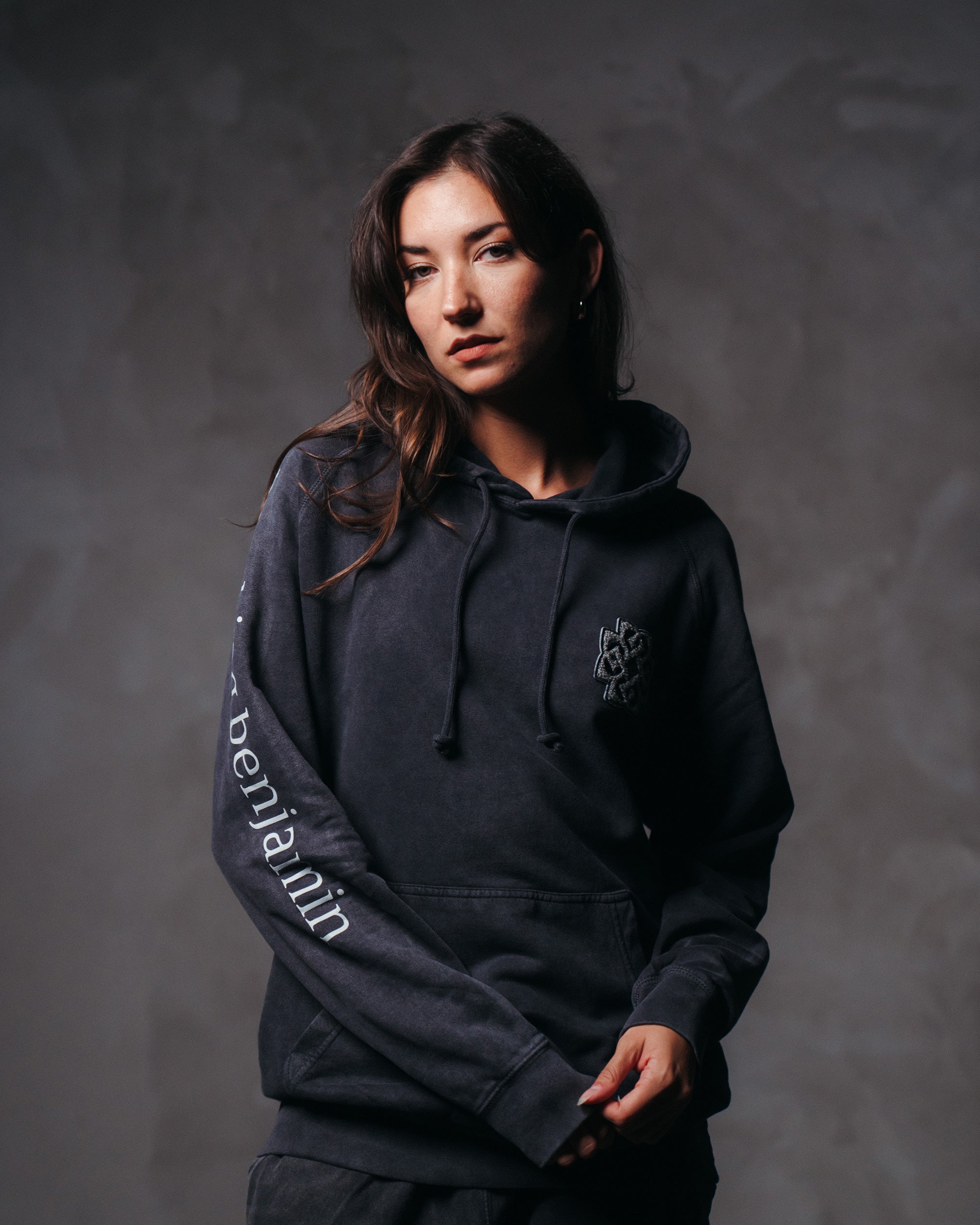 - Black vintage hoodie featuring the 'Breaking Benjamin' logo design